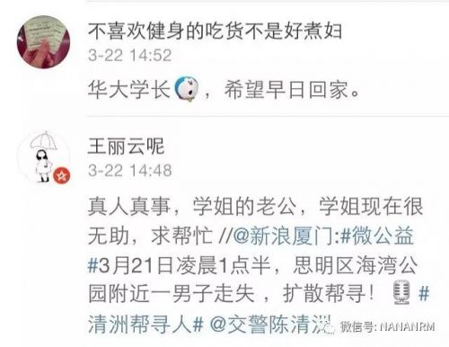 据了解,在华侨大学毕业后,叶新佳在厦门开了家公司,目前也已结婚生子。这突如其来的失踪,一家人并不知道该怎么办。