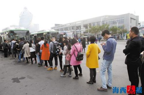软件园二期乘客自觉排队乘公交车,彰显文明厦门。资料图