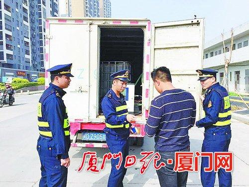3月23日上午,厦门市交通综合行政执法支队翔安执法人员在翔安区内田桥附近巡查时发现一辆白色厢式货车形迹可疑,“左摇右摆”像在躲避执法车辆,执法人员立刻上前示意其停车接受检查。原来,车厢里运载着三个1米高的白色方形塑料桶。往桶里一看,竟是满满的柴油,旁边配备一个类似于加油站的计价器以及电灯,仿佛就是一个小型加油站。据驾驶员交代,油桶里装有2吨左右柴油。该车现场无法提供道路运输证或其他有效证明,涉嫌未取得道路危险货物运输许可擅自从事道路危险货物运输。目前车辆已被翔安大队暂扣,该车经营者有可能面临10万元以下的罚款。(文/图 记者 张彦宇 通讯员 罗玮)
