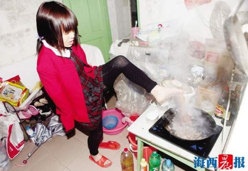 女子双手残疾善用脚刺绣绘画 想在厦门找工作