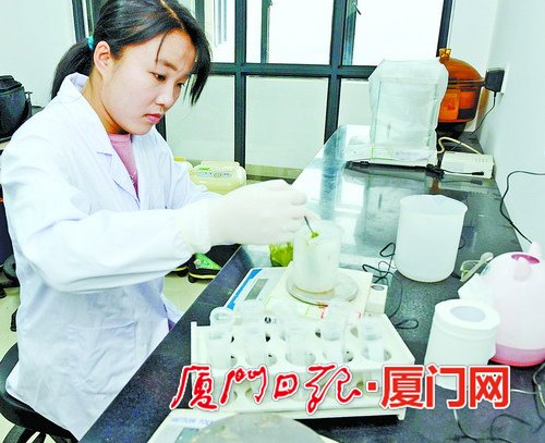 农产品安全监测向来被视作农产品进入流通环节前的最后一道关,为确保不放过一根“毒菜”,市农业局在短时间内快速布局建成了市、区和镇(街)三级监测体系以及企业自检辅助模式,农产品安全监控网不断收紧,确保将所有隐患控制扼杀在萌芽状态。去年,市、区、镇三级农业部门共完成检测任务17000多份,其中快速检测15000多份、实验室检测2000多份。在市农业部门的鼓励与扶持下,厦门的农业大型企业也建立起较为完善的农产品自检机制。目前,在农业部门的监督下,如意情、银祥集团、闽南果蔬批发市场、中埔批发市场、银鹭集团、翔安胡萝卜出口基地等规模较大的农产品生产企业均实现了企业自检。