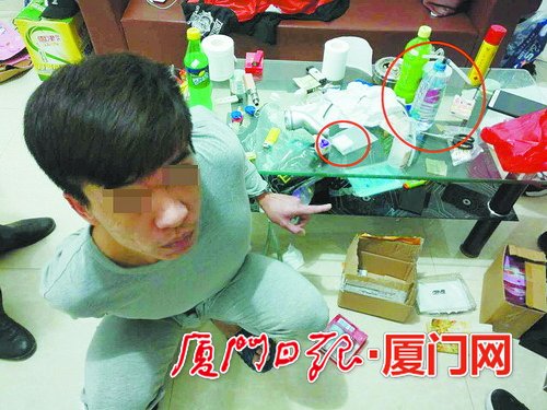 3月26日,中华派出所民警邱立接到一条线索,翔安马巷一出租房有人聚众吸毒。民警当晚6点多赶到马巷,找到这处出租房。这套房子有两房两厅,民警冲进去时,三名男子刚下班,正在屋内忙着自己的事情。