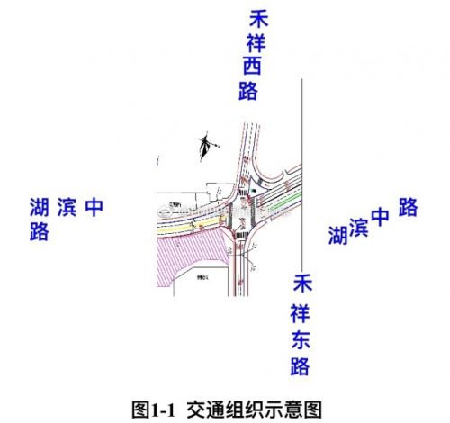 施工期间,湖滨中路与禾祥东西路交叉口东、西进口道每天的6:00-22:00期间禁止机动车左转,东进口公交车全天候允许左转,其余时段允许机动车左转,南、北进口道允许机动车全天候左转。过往车辆根据交通标志、标线及交通信号灯指示通行。