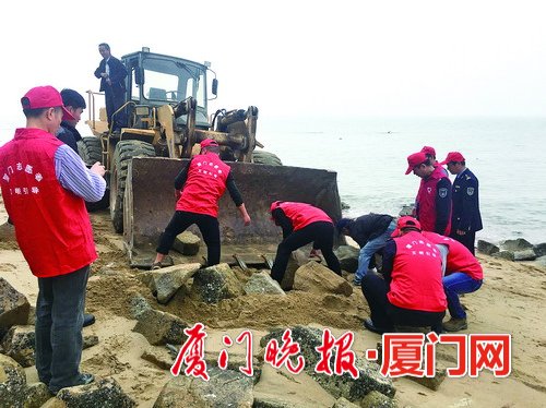 我市环境综合整治提升再发力。昨日,我市海洋综合行政执法支队的队员和志愿者们来到厦大白城海域,对乱石进行清理。