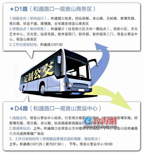 此外,为提高运行效率,方便群众出行,6月1日起拟调整D4路(和通路口—观音山营运中心)。(海峡导报记者 崔晓旭 通讯员 左林)