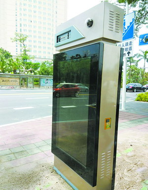 据公交集团工作人员介绍,在解决用电问题后,这些电子站牌将会陆续投入使用。记者注意到,这种智能电子站牌就架设在公交站台旁,高约2米,站牌其中一面装着55吋的液晶屏幕,另一面则是传统的线路站点标注图;站牌侧面设有一个小窗口,安放着一台E通卡相关服务器。据介绍,智能电子站牌的监控探头主要是用来保护站牌不被人为破坏;55吋液晶屏幕将用于显示公交站点以及公交车的实时位置,方便市民候车,而传统的线路站点标注图可以保证在断电的情况下,依然能发挥站牌的作用。