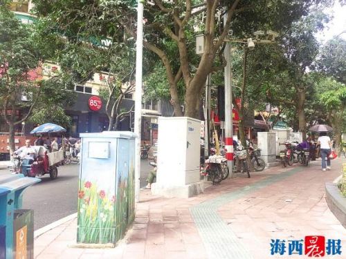 记者注意到,仅在台湾街与江头南路的交叉口,就摆放着5个电箱,有的电箱还成了藏污纳垢之地,上面贴满广告。