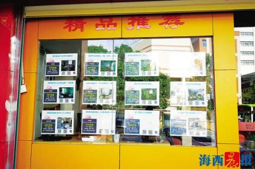 房产中介橱窗前各种房源广告有碍观瞻。记者 雷妤 摄