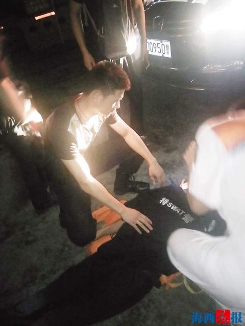 8日20时45分,公共交通分局民警吕国祥带上协警林樑欢、蔡添丁赶到事发地第一码头旁,发现落水男子全身冰冷,吕国祥和林樑欢立即脱下身上的制服,包裹住落水男子。