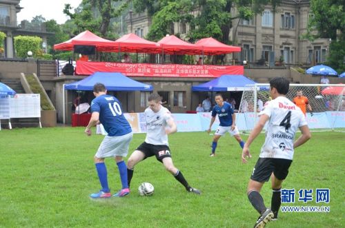 不同肤色,不同语言的球员在鼓浪屿的球场上挥汗如雨。(思明区委宣传部供图)