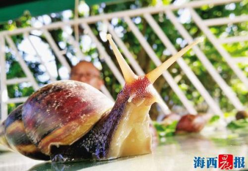 蜗牛种类繁多,非洲大蜗牛体型大,大多超过25厘米。记者 陈理杰 摄