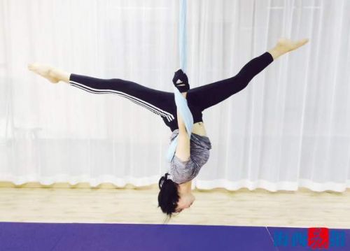 “空中瑜伽的魅力在于结合了传统瑜伽的体式、舞蹈的优雅、普拉提的力量等项目的长处,达到趣味与塑形的目的。”朱灵子告诉记者,空中瑜伽练习起来并不比普通瑜伽难,没有基础的人也可以练习。