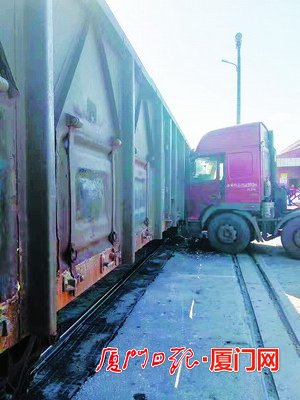 厦门一货车撞上行驶中的列车 被横向拖行5米无人伤亡