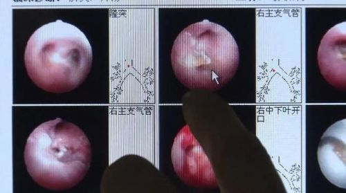 经过支气管内镜的检查,果不其然,医生在小雨的支气管中发现了困扰小雨9个月之久的“罪魁祸首”——瓜子壳!