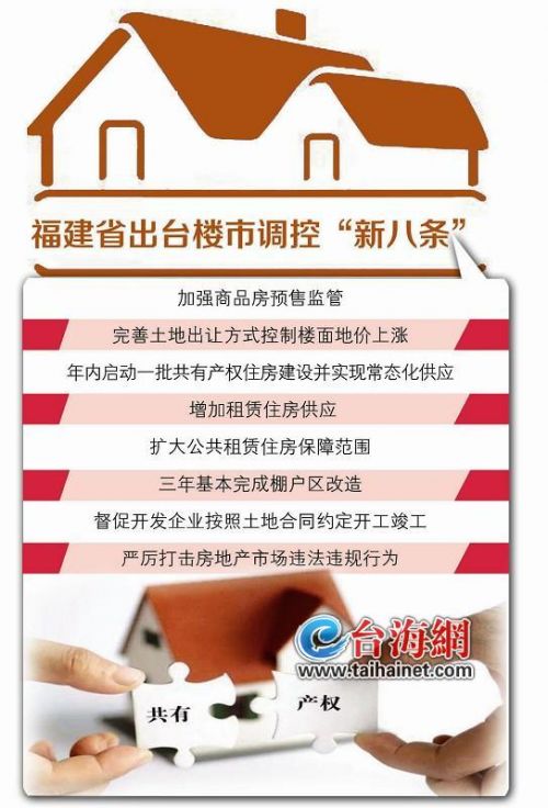 前日,北京427套共有产权房开始摇号,昨日,福建省就出了房地产市场调控“新八条”,旨在通过加强商品房预售监管、完善土地出让方式控制楼面地价上涨、年内启动一批共有产权住房建设并实现常态化供应、增加租赁住房供应、扩大公共租赁住房保障范围、三年基本完成棚户区改造、督促开发企业按照土地合同约定开竣工、严厉打击房地产市场违法违规行为等八条措施,以新的政策“组合拳”坚决遏制部分地方房价不合理上涨、过快上涨,让房子回归居住属性。