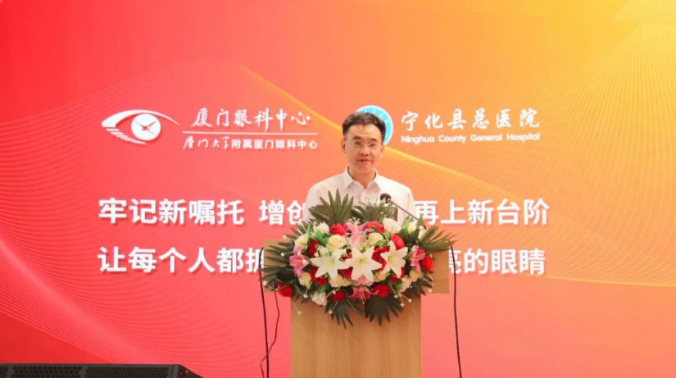 “我县坚持人民至上、敢为人先,以实施“六大工程”为抓手,推动三明医改再出发。医院的发展离不开上级医院关心与支持,真诚期待厦门大学附属厦门眼科中心给予宁化县总医院更多的帮助,不断提高我县医疗技术水平和服务能力,不断增强老区人民群众的就医获得感、幸福感、安全感。”