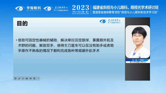 厦门眼科中心杨梅教授分享《新型可固定性手术器械在无助手斜视手术中的应用》