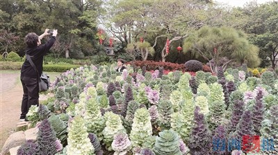 羽衣甘蓝“长高”成塔,吸引不少市民游客拍照打卡。记者 仇慧亮 摄