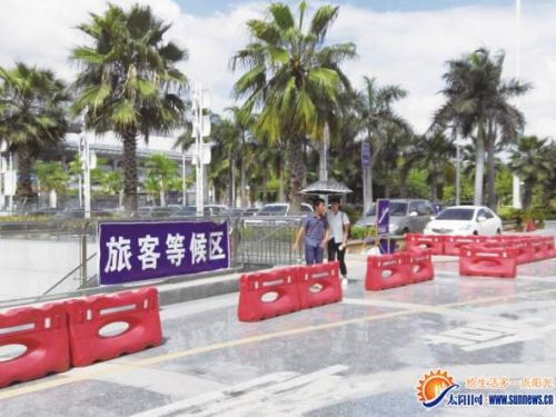 记者看到,有些旅客打着太阳伞在排队,也有不少旅客站在烈日下急得直跺脚。“那么大的停车场没有一块遮阳棚,我都快被晒爆了。”一位女士抱怨道。