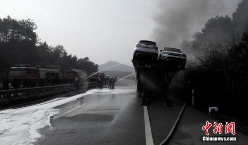 11月12日8时37分许,一辆满载20辆小汽车的挂车(车牌号:黑MR688)途经大广高速公路江西上高境内,因轮胎自燃造成8辆小汽车不同程度烧损。11月12日8时37分许,一辆满载20辆小汽车的挂车(车牌号:黑MR688)途经大广高速公路江西上高境内,因轮胎自燃造成8辆小汽车不同程度烧损。驾驶员称,车辆从北京出发,准备明天运抵厦门,仅被烧毁的新车损失就达150多万元。