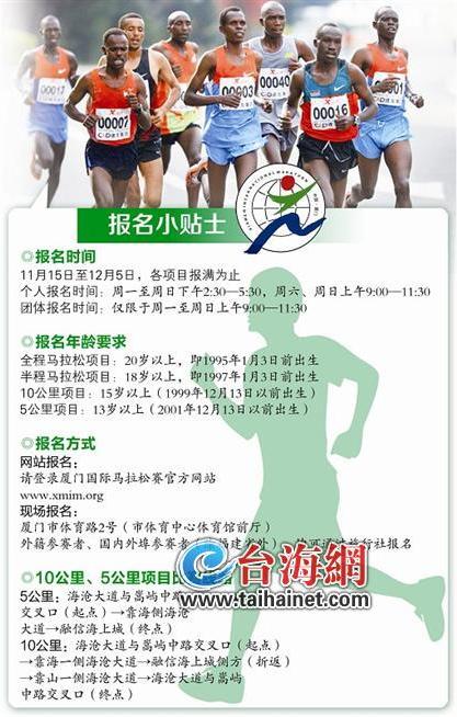 值得一提的是,凡符合厦门国际马拉松赛参赛年龄规定并获得10公里男、女前50名者可免费和优先报名参加2016厦门国际马拉松赛,第51名至300名者可优先报名参加2016厦门国际马拉松赛。(记者 崔晓旭/文 叶允平/制图 吴晓平/图)