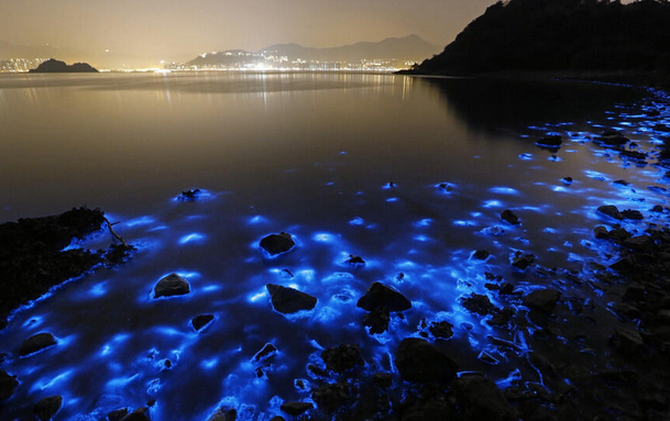 今年1月22日,香港海岸也曾出现罕见“蓝眼泪”奇观。在专业摄影师的镜头下,这一景观美艳无比——