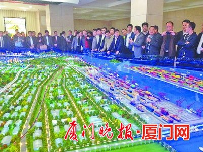 ■闽商参观福建自贸试验区厦门片区东南航运中心海沧核心港区域的沙盘。
