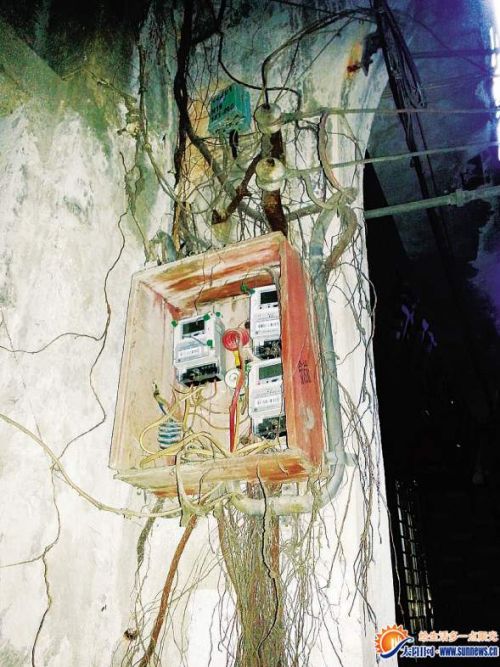电表被榕树缠住。记者 彭怡郡 摄
