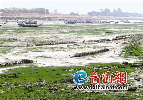 近日,导报记者来到杏林大桥附近海域,正值退潮,海边的滩涂上,覆盖着一大片一大片的绿色藻类,不像到了海边,倒像到了“绿草地”上,满眼尽是绿色。