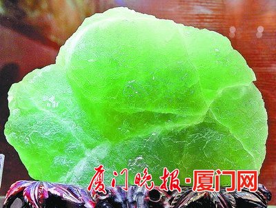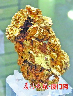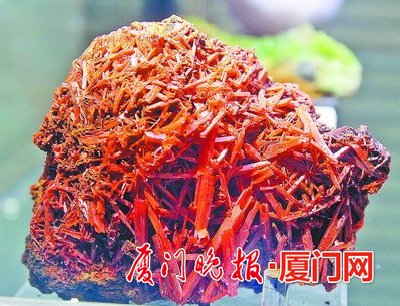 ■石材展上展出的铬铅、天然萤石、自然金等精美矿石。