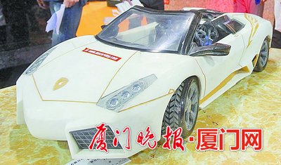 ■厦门石材展上展出的石制汽车。