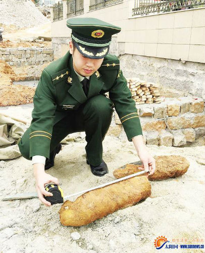 “别看它锈迹斑斑,它的引信还未遭到破坏,弹体保存仍完好。”王警官告诉记者,如果炮弹被施工的机械重击,有可能爆炸。幸好炮弹被及时发现,目前已移交市公安局特警支队作后续处理。