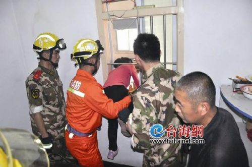 征得户主同意后,消防官兵运用液压剪,破拆杂物间窗户的防盗网,户主10岁的女儿爬进杂物间内开门,大人进去将小男孩抱出来。(通讯员 陈荣亮 杨文炜 记者 黄敏江)