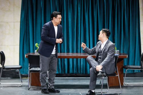 搞笑萌叔贾冰此次带来的表演同样笑点不断并且极具思考性。作品中作为身处企业危机的老板,面对前来收购的老伙计,展开了连续反转的剧情演绎。对自己员工的百般不放心,以及对其“皇帝的新衣”般才艺的超高评价,让节目全程高能不断。其中贾冰独具辨识度的“撒~巴扎嘿~”“长得违章”等贾式金句一出,让作品充满贾冰味道的同时,也让观众笑声连连。